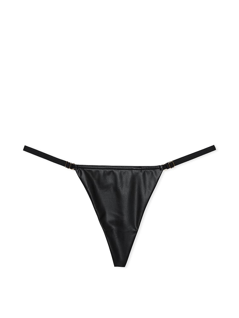 Panty V-String Ajustable de Piel Sintética. La piel sintética le da un toque atrevido a esta panty sexy, con tiras laterales ajustables para un toque personalizado.